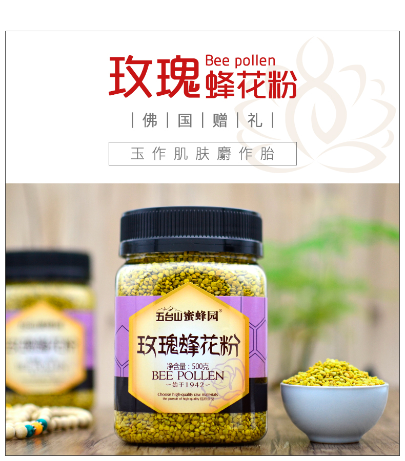 五臺(tái)山蜜蜂園玫瑰蜂花粉500克